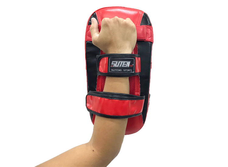 - สวมเป้าล่อเตะเข้ากับแขน และรัดสายให้แน่นกระชับกับแขน