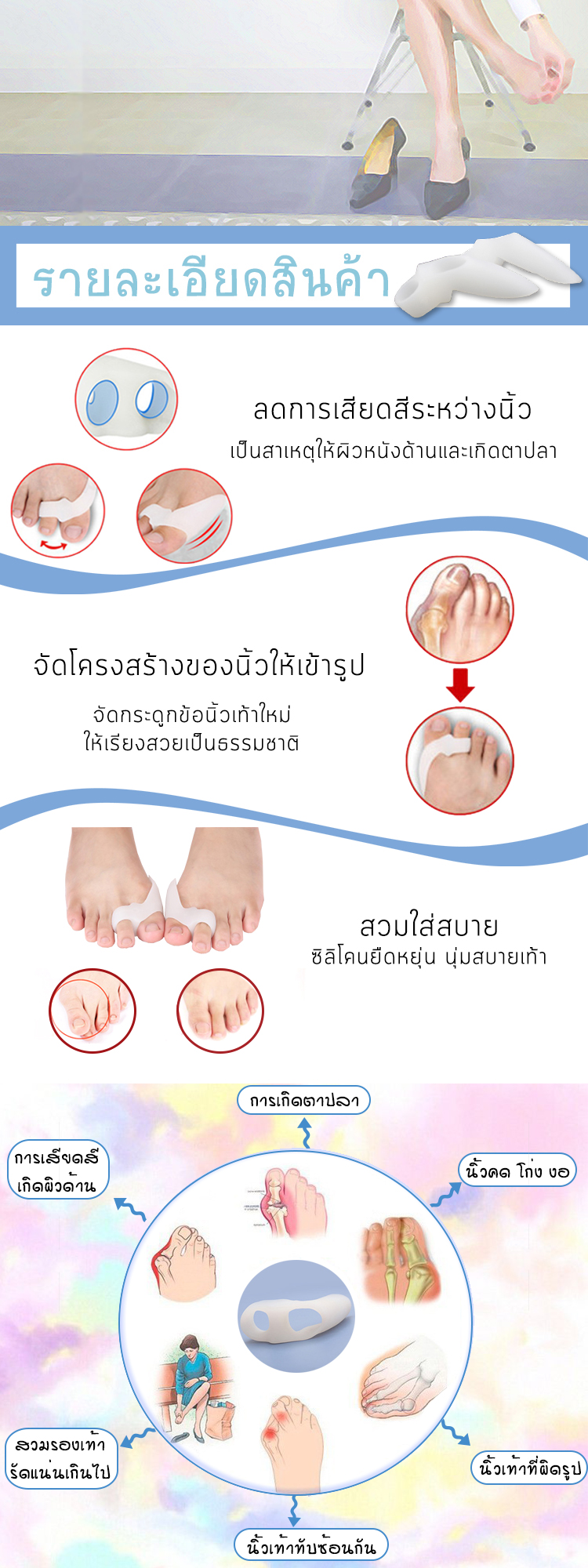 - ช่วยบำบัดอาการนิ้วเท้าคด โก่ง งอ