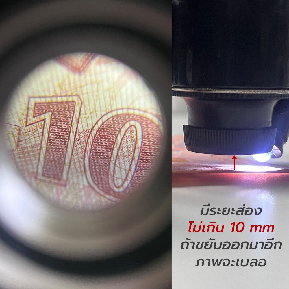 โดยระยะโฟกัสภาพจะอยู่ที่ประมาณ 10 mm ระหว่างเลนส์กับวัตถุ