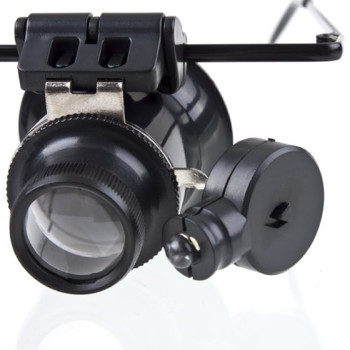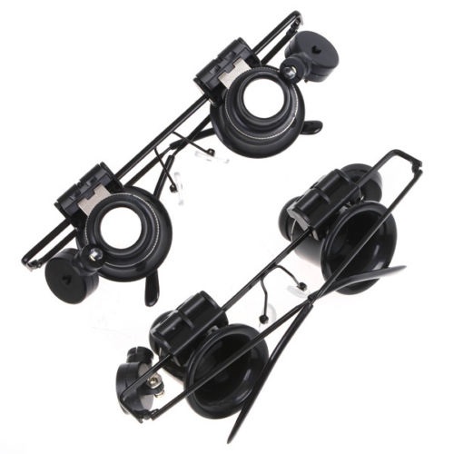 Specifications:Glasses type watch repair magnifier with LED lightEyeflap can be overturned freelyApplicable range: industrial purpose, circuit board, coin & stamp and etcMaterial: ABS + optical glass lens + stainless steel supportDouble layer lensEffective diameter: 18mmMagnification: 20Xwhite light LED bulbPower :4 x CR1620 batteries(Batteries are included) Color: BlackNet Weight: 60g/ 1.95ozSize: 150 x 50 x 40mm/ 5.9 x 2.0 x 1.6 inchSKU#:9892AD