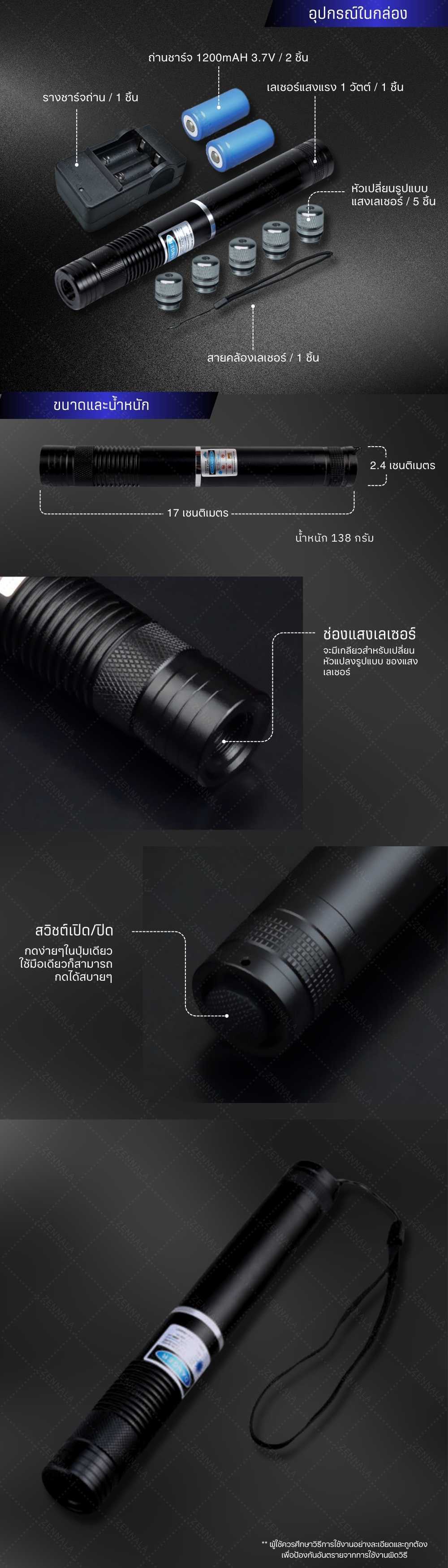 *** หมายเหตุ *** ระยะทางและความเข้มของแสง ขึ้นอยู่กับสภาพอากาศและแสงแดดในเวลานั้นๆด้วย