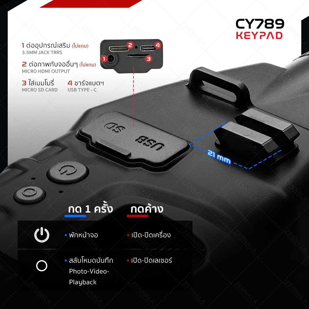 - 3.5mm Jack TRRS : ต่ออุปกรณ์วัดระยะ Rangefinder (ไม่แถม)