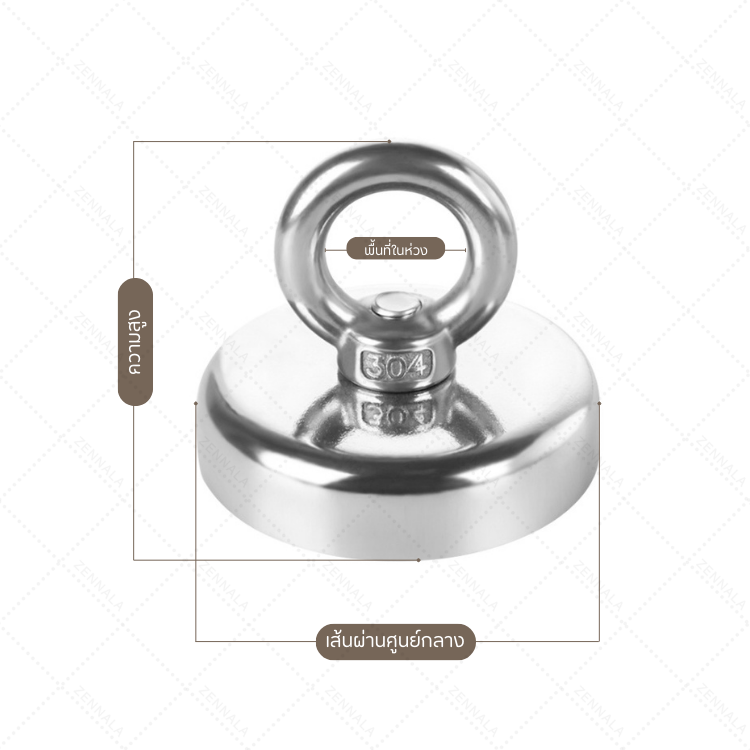 -  D20 เส้นผ่านศูนย์กลาง 20 mm. สูง 28.3 mm. พื้นที่ในห่วง 10.7 mm. แรงดึง 8 kg.