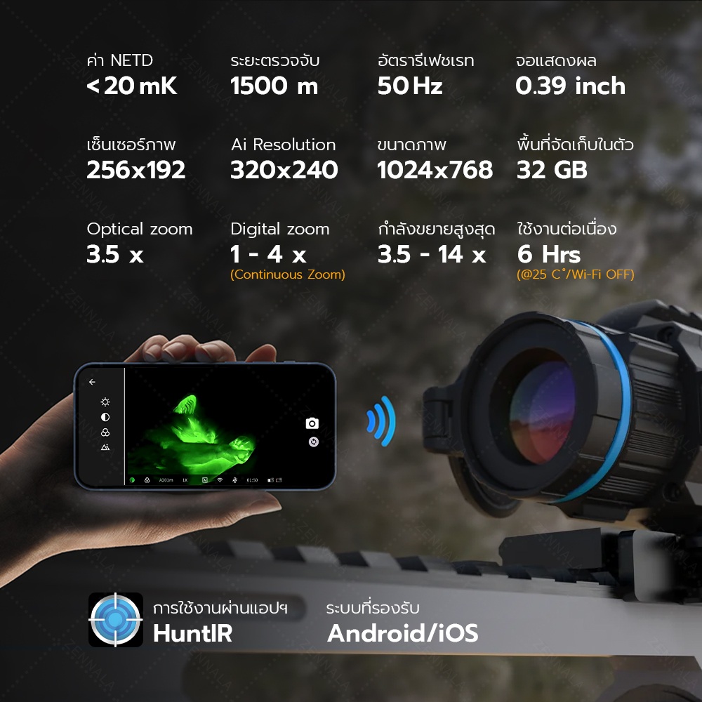 - กล้องความร้อนแบบใหม่ ใช้งานผ่านแอพพลิเคชั่น HuntIR บนสมาร์ทโฟน