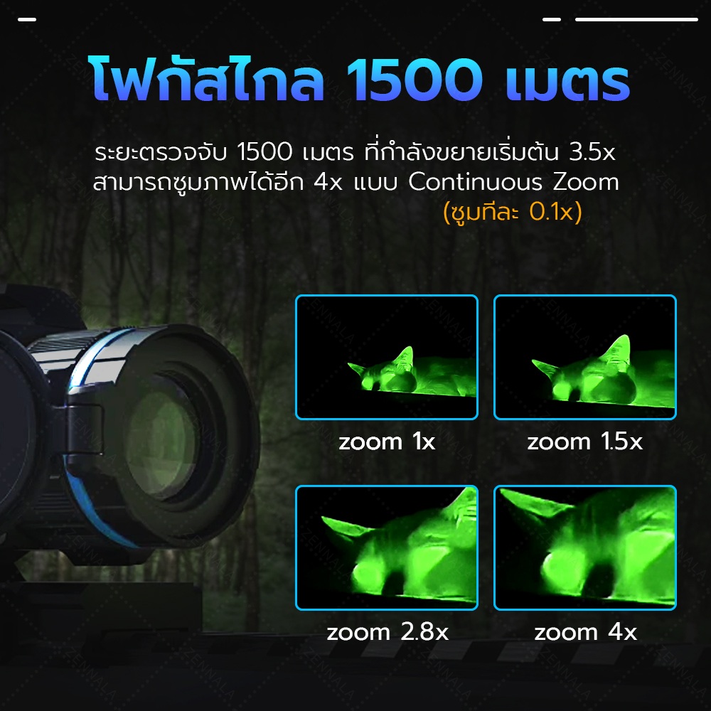 - มองเห็นเป้าหมายที่ชัดเจนในระยะห่างจากกล้องสูงสุด 1500 เมตร