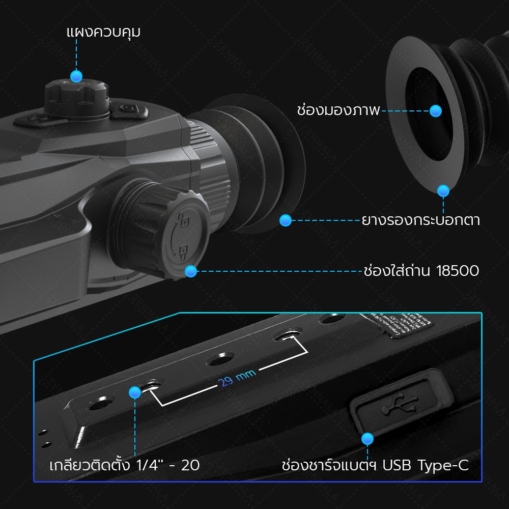 - ตรวจจับภาพทางความร้อนได้อย่างชัดเจน แม้ในสภาพแวดล้อมที่ซับซ้อนและมืดสนิท
